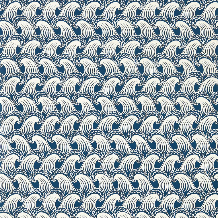 Surfboards at the ready! Ok, well, maybe not, but this fun ocean wave wallpaper is perfect for seaside homes or for those with a love of classic design. Inspired by the Arts & Crafts movement, Ride the Wave is produced in a wonderfully useable scale and printed in a rich indigo blue colourway.